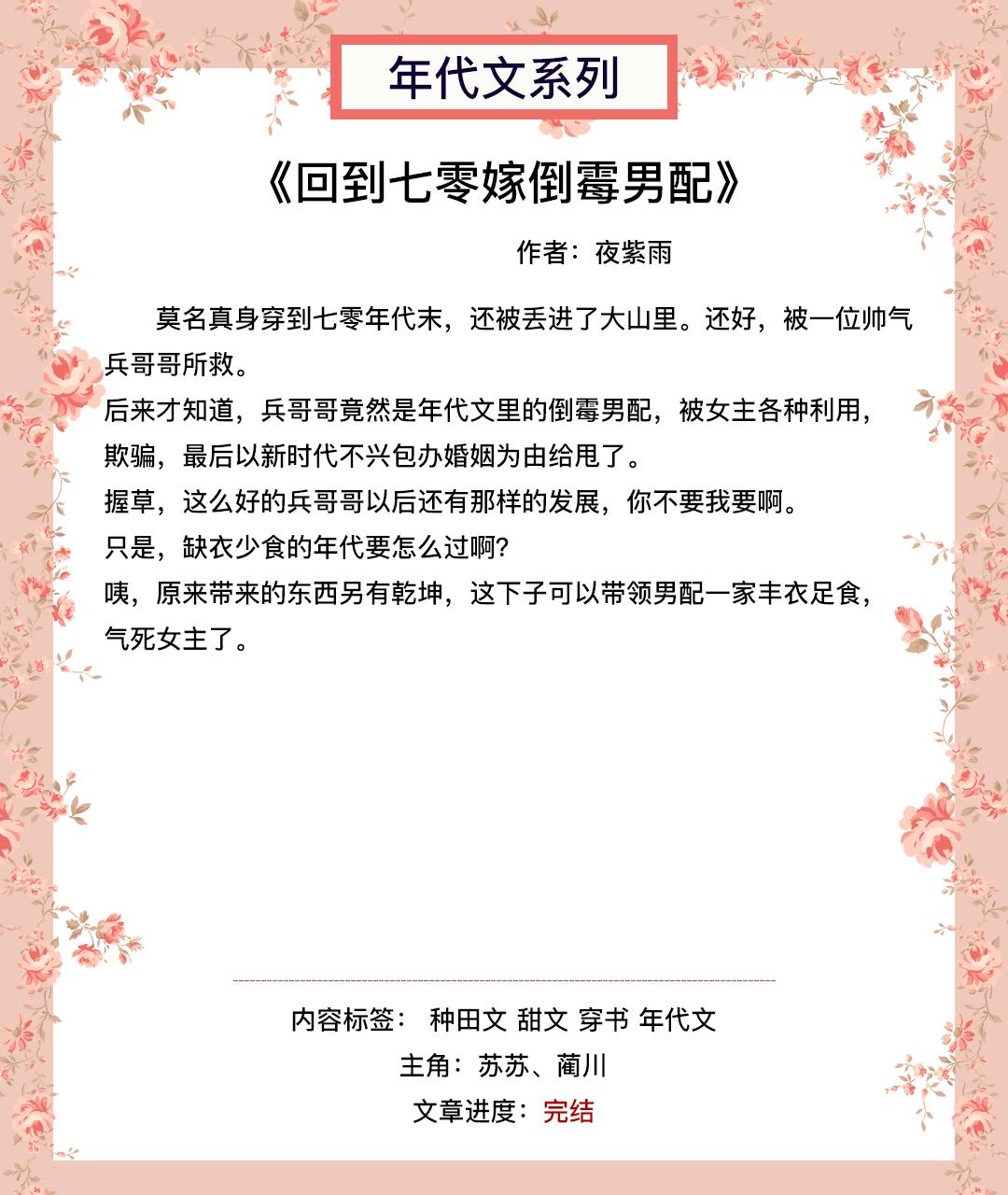 年代文盘点!甜宠文!《七零娇宠小咸鱼》《回到七零嫁倒霉男配》