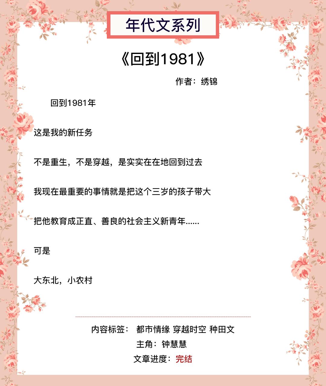 第四本《回到1981》 作者:绣锦