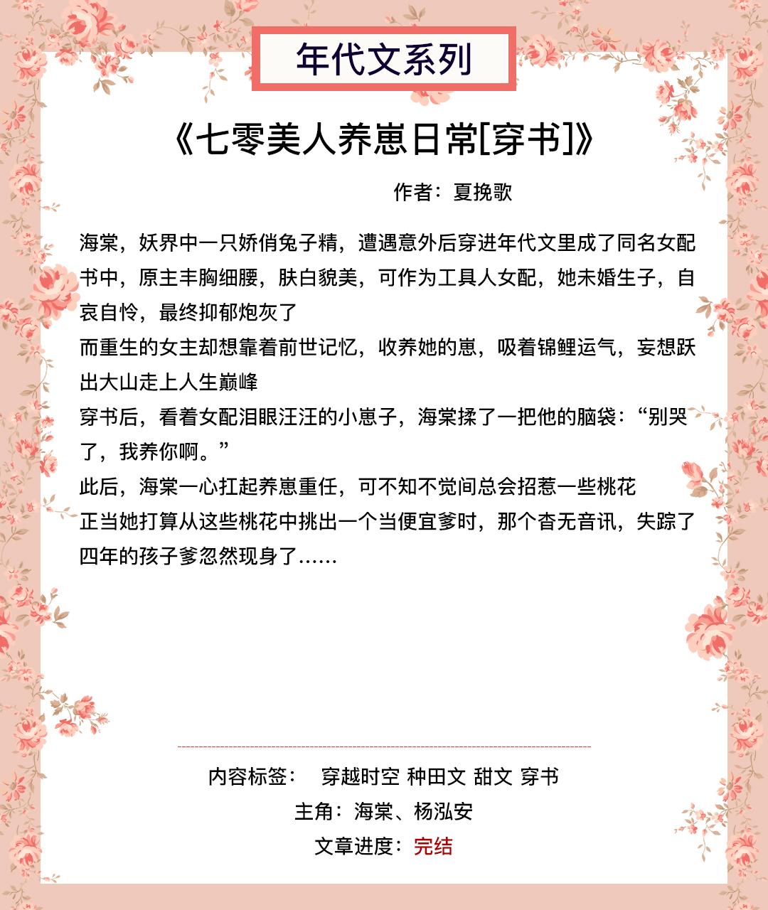 第九本《七零美人养崽日常[穿书]》作者:夏挽歌