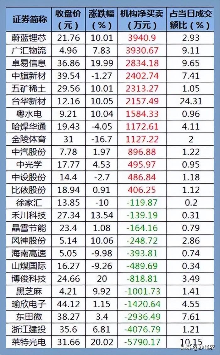 ▊龙虎榜机构资金动向