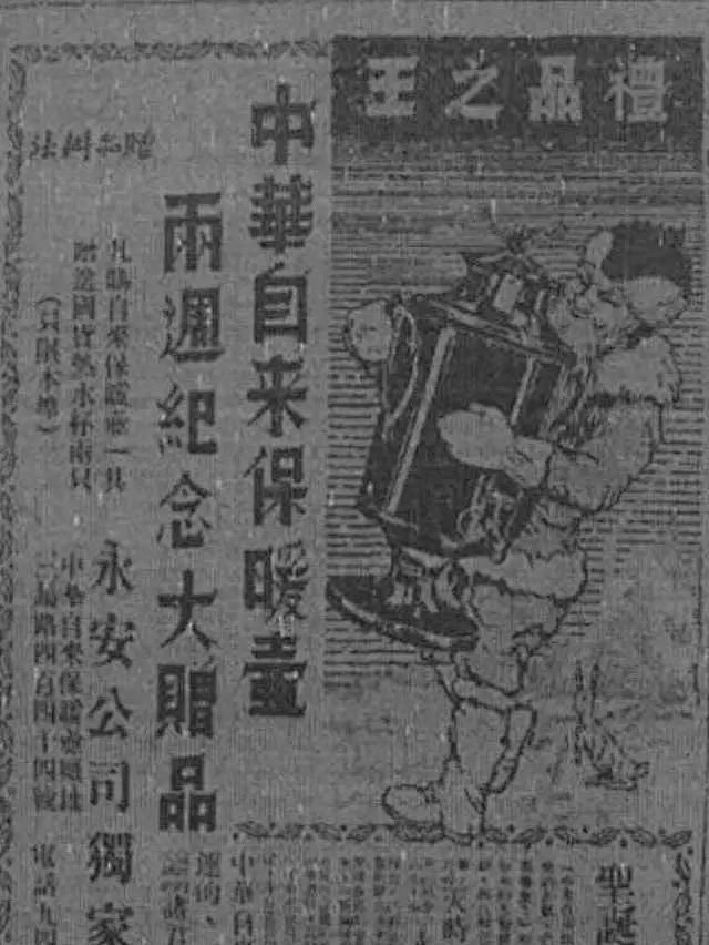 许多国货为了迎合市场,还对圣诞老人的形象做了本土化改造。在中华自来水保温瓶的广告中,圣诞老人就戴着中式的棉帽。