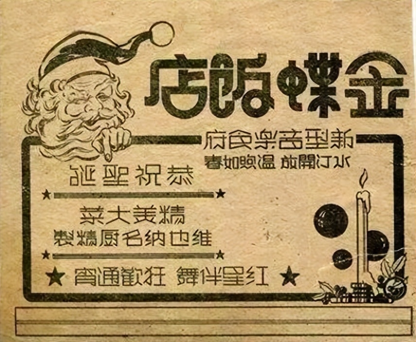 1916年,《申报》上首次出现圣诞广告——联生公司的圣诞节礼品广告。随后在报纸上打圣诞广告的商家,从瑞士名表到儿童玩具,无所不包。肥皂、香烟,甚至跌打药等商品都搭上圣诞节的顺风车,连续在报纸上发布打折信息。