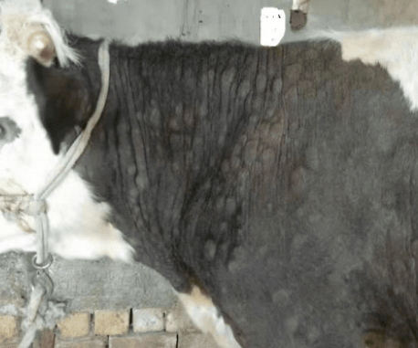 这个病不单单是牛,其他动物如羊,猪,犬等也容易患该病。本病是由螨虫引起的(主要是痒螨和疥螨)。由于螨虫在牛的真皮层内移动,会造成剧烈的痒感,同时会引起一定的炎症反应,造成皮肤出现水疱。初期面部,颈部,背部开始发病,后期遍布全身,引起牛掉毛,并伴随有白色皮屑脱落。