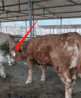 这种皮肤病的典型症状是牛出现异食癖,食欲减退,被毛褪色,眼周围由于被毛褪色或者脱毛,牛就像戴上了白色眼镜一样,如下图所示:
