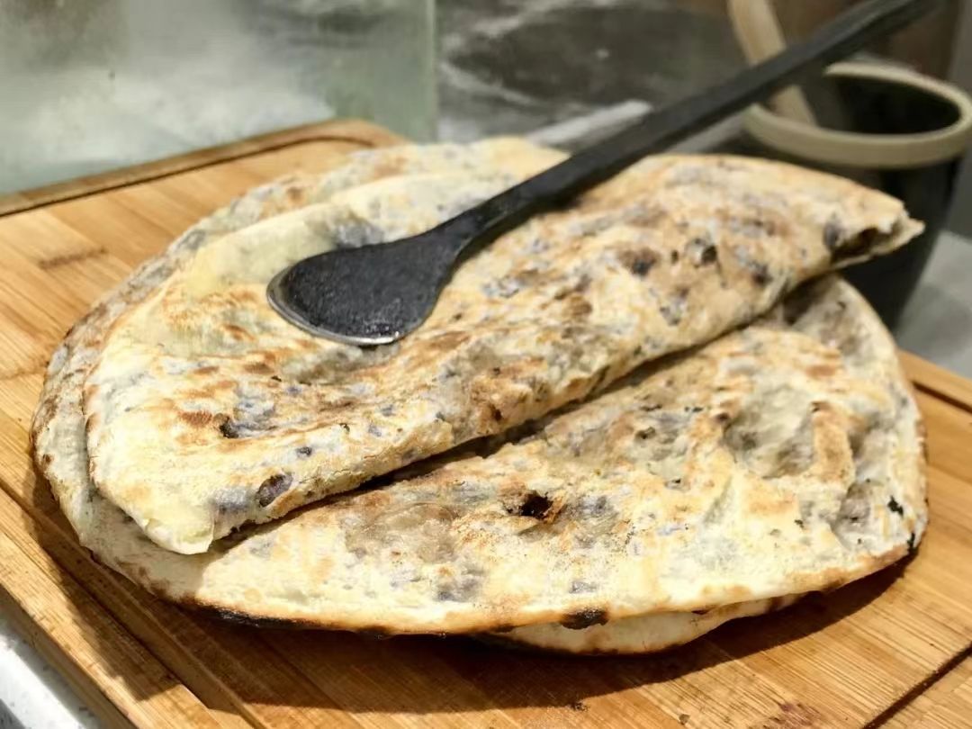 用炭火烤的梅菜扣肉饼,外皮酥脆,薄薄的一层,搭配到裹得很均匀的梅干菜,一口咬下去,又有嚼劲又好吃。梅干菜咸度刚刚好,入口带点回甜,味道香酥焦软,也可以外带回家,用烤箱烤一下就可以吃啦。
