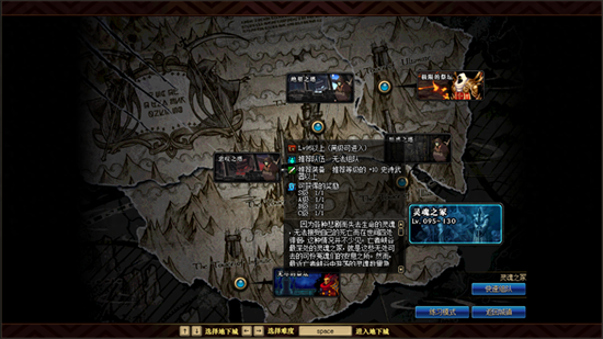 地图第一个图是最中心的一个房间,这一个房间不会消耗时间,入场后可以看到中上部分有一个时间倒计时,右上角是地图,地图中有图标,绿色牛头代表精英怪击杀获得10点点数,红色牛头代表领主怪击杀获得15点,没有图标代表普通怪击杀乎获得5点,击杀不同怪物获得的分数不同,分数条在倒计时上看到对应的C(20)B(40)A(65)S(100)级分值,涨到对应的等级奖励,那么倒计时结束就能获得对应的奖励。