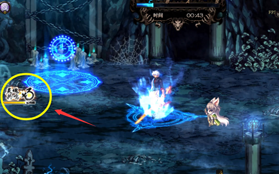 此外有2个圆形蓝色图标,这一个是重置全部技能CD的图标,所以玩家可以选择合适的路线,击杀领主,吃CD重置BUFF,这样可以最快的达成S级奖励。只要获得100点点数就可以了。