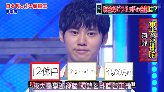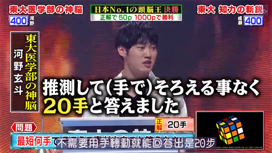 看了十几分钟已经意识到,下面这位东大医学部的天才选手河野玄斗应该就是王中之王了。