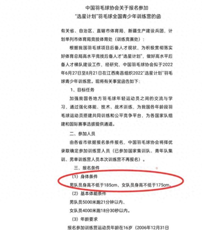 近期,中国羽协举办了“选星计划”,这个活动主要是为了选拔各省市的青少年苗子,健全完善国家队梯队建设,也正因为如此,这个“选星计划”也受到了各体育局的重视,不过在“选星计划”的标准出炉后,也是瞬间引发了热议。