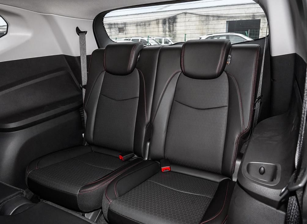 身高1.79米的乘客坐进前排,调整好合适的坐姿,头部空间一拳。坐进第二排,头部空间四指,腿部空间两拳一指。坐进第三排,头部空间一指,腿部空间四指。第三排乘坐空间够用,只是椅垫有些偏低,成年人乘坐,双腿得不到支撑,长时间乘坐会觉得累腿。
