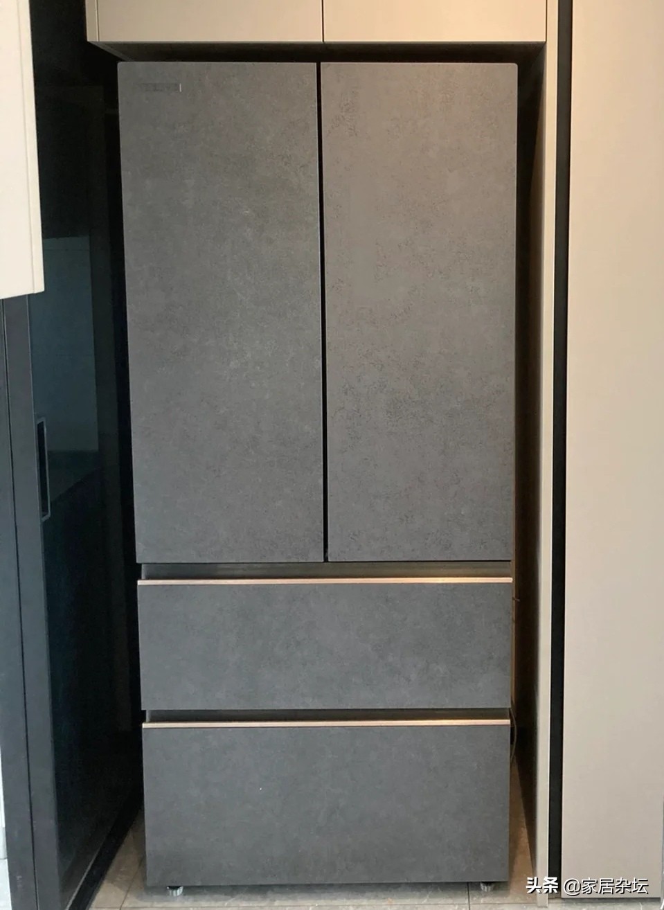 法式多开门电冰箱,上面是对开门,下面基本上是2~3个抽屉。这种电冰箱的内部没有立柱,存储空间更大,使用更加合理。