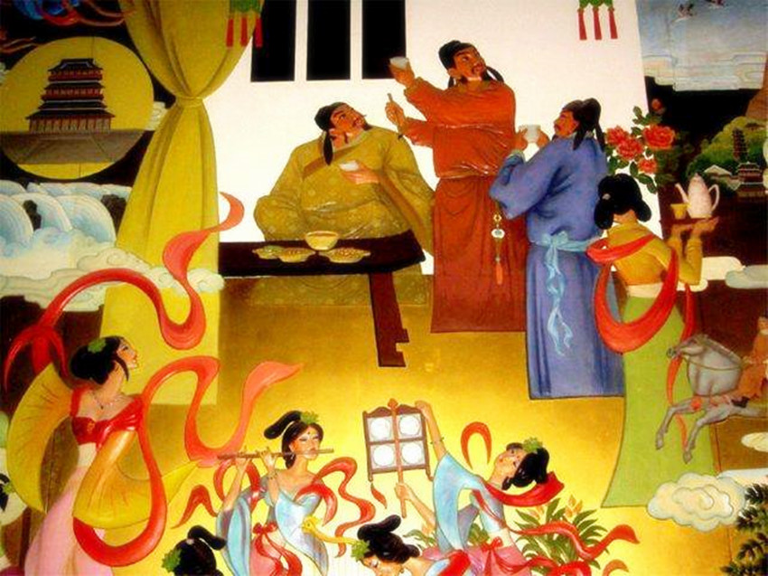 对此,歌女们是又惊又喜,连忙向三位大师行礼。行礼完毕,他们宴请三人入席,而这三人也不推脱,高高兴兴的入了席,同他人饮酒作乐,又闹腾了一天。
