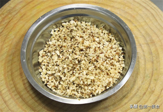 准备五花肉一块,先切成肉片再剁成碎末,不要剁得太碎,