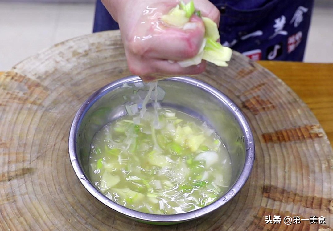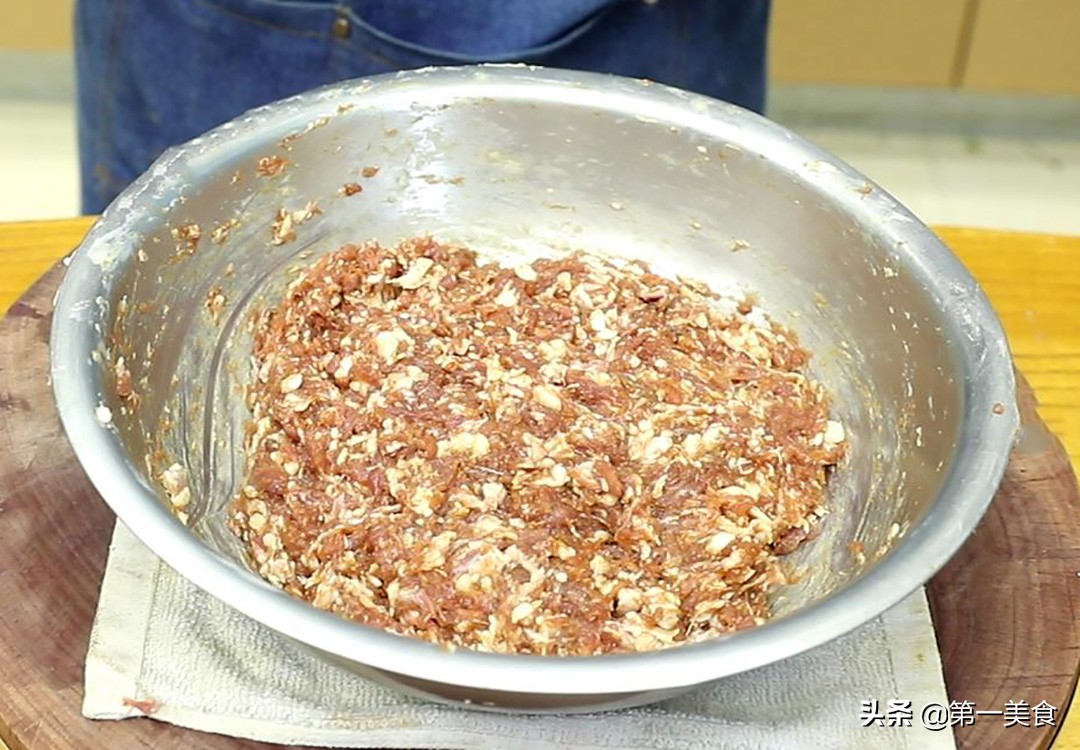 这样既能让肉馅变得饱满又能去腥增香,千万不要用料酒去腥,不然酒精挥发不出去会影响肉馅整体的鲜美感
