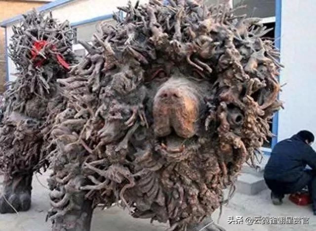 这只巨型“藏獒”是采用楠木树根制作而成的,头部和前肢是人工雕刻,而身体其他地方均为天然形成。全身高2米,长4米,重达3吨。