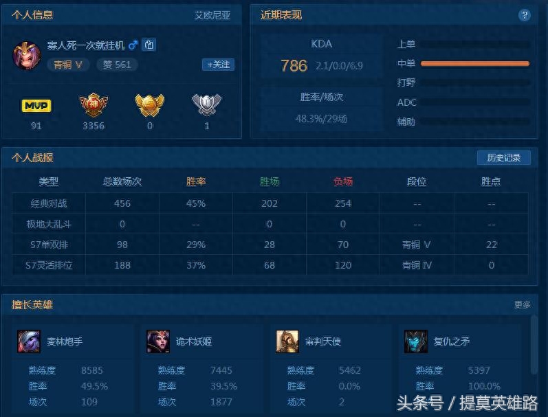 目前这位老哥依旧在黄铜五徘徊,但是不死也一种乐趣么。玩游戏就是心态最重要。
