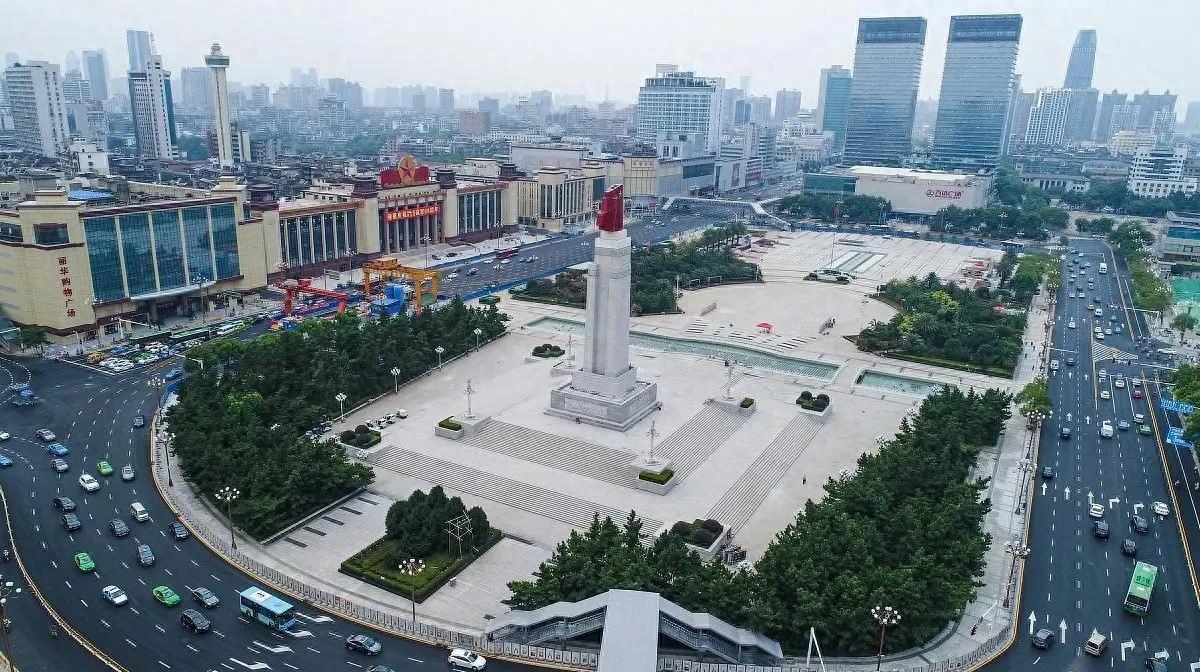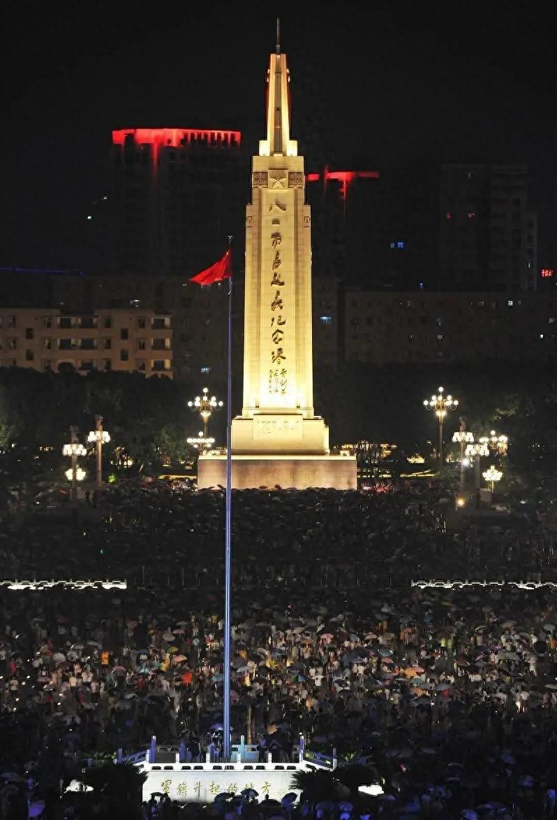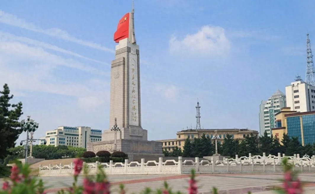 八一南昌起义纪念塔,矗立在城市中心的八一广场上,正面镶嵌着叶剑英手书:“八一南昌起义纪念塔”镏金大字。