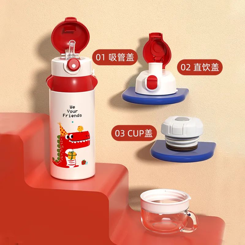 儿童保温杯,均为弹盖吸管杯,HX-550-60具有不少实用细节设计,透明可视杯盖可以看到剩余水量,杯盖处有感温硅胶,高于50°C为红色,低于50°C为紫色,防止水温过高烫口,还支持定制,售价89元,性价比高。