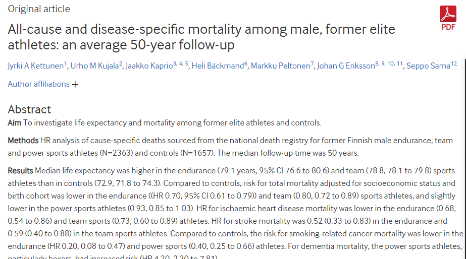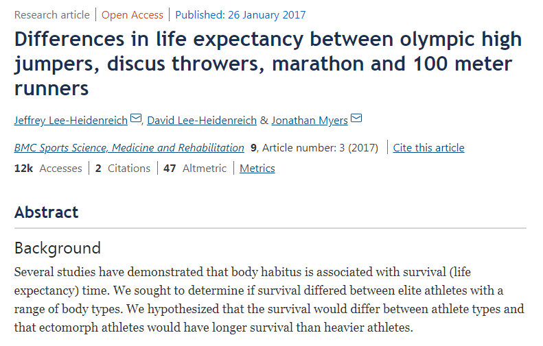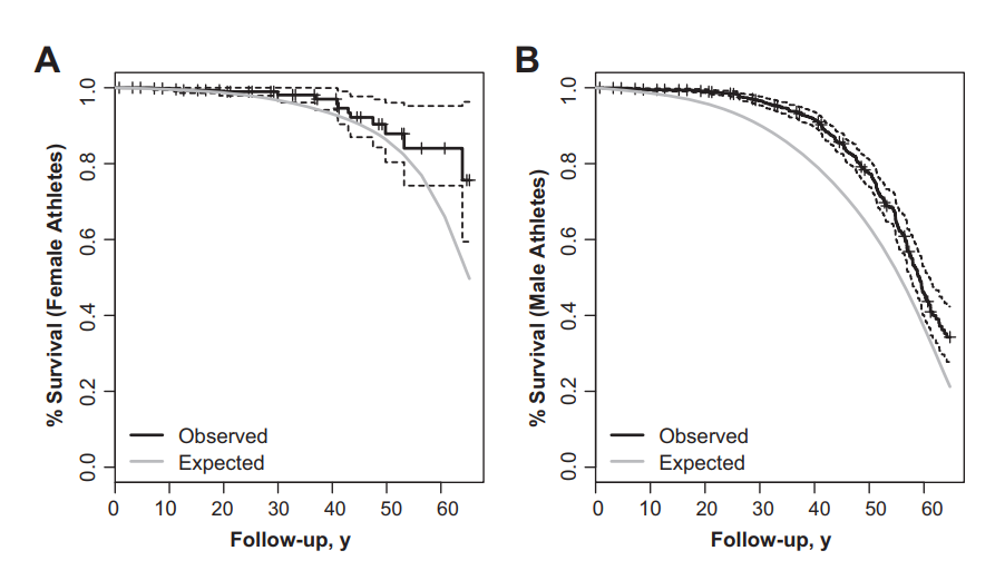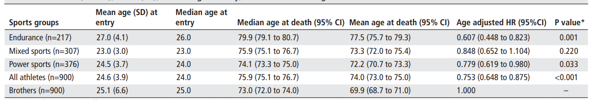 其他大量研究得出的结论高度一致,运动员寿命长于普通人。