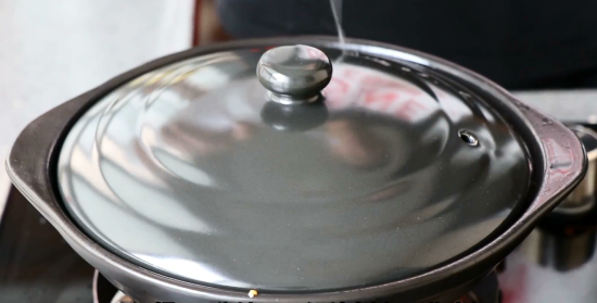 5分钟后,沿着锅边淋一些米酒,再焗1分钟,