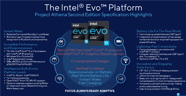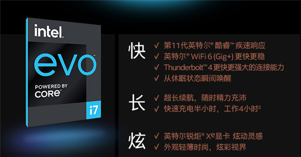 在EVO认证的笔记本中,1秒内的唤醒能力都是必备的,而这主要是跟EVO笔记本全面使用十一代酷睿处理器有关,这也是EVO标准中的基础,从制程工艺到CPU架构、GPU等全面升级了。