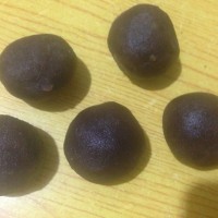 6.将豆沙放锅里稍微炒一下,待冷却后捏成小圆球,买来的豆沙都比较湿,炒一下口感更好,也更好包。