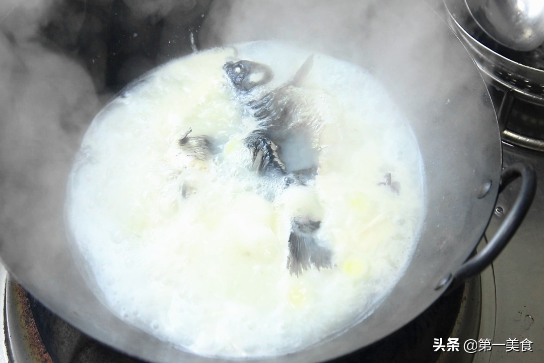 3.一定要加开水、大火炖煮,这是鱼汤又浓又白的关键。