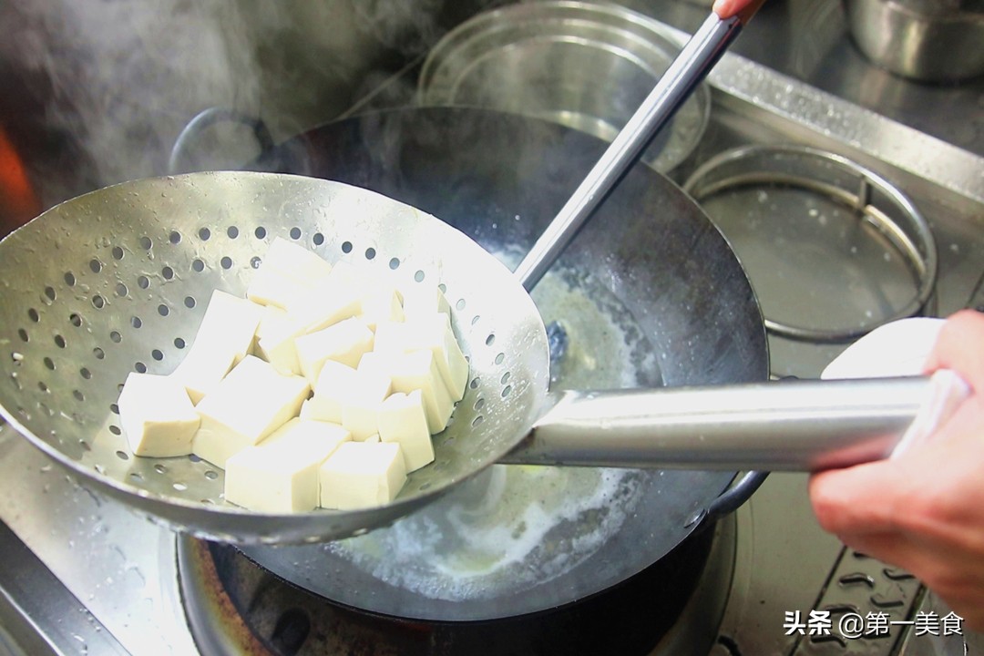 7.水烧开以后慢慢倒入豆腐,然后盖上锅盖中大火炖煮10分钟。10分钟以后掀开锅盖,加入食盐4克、胡椒粉2克,沿锅边打去浮沫。再转小火煮5分钟给汤汁入味。