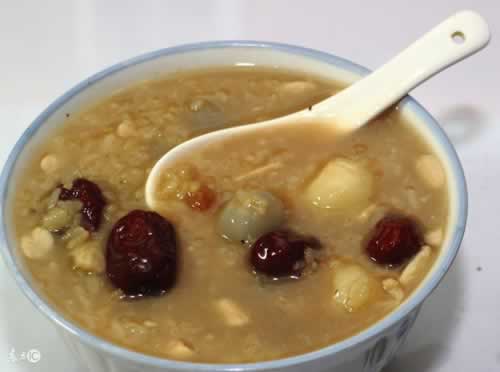 6、龙眼30个取肉,红枣10枚撕破,用粳米100克,煮粥2碗,加适量红糖,早晚各吃1碗。可补脾生血,养心增智,老年人尤宜。