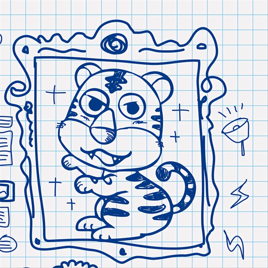 这幅画画的有点像虎头猫身,所以,我们可以把身体改得稍微大一些,四肢再粗壮一些会更像老虎。或者把身子再小一些,让它看起来更可爱。 如果是写实画,尽量按照动物头身的比例画;如果是抽象化,就无所谓了,头大身小会更吸引眼球。