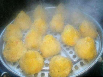 6、窝窝头做好之后就直接用蒸锅去蒸了,一般来说,15分钟的时间就够了,出锅之后不妨给狗狗尝一下,有肉又有蔬菜,原料十足,狗狗还是挺爱吃的!