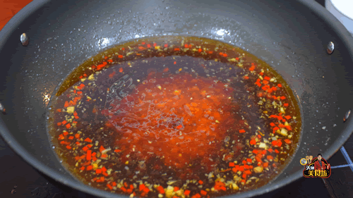 第六步:起锅加油烧热,油温5成热左右,放入姜蒜小米椒碎,小火炒香,炒香之后放入2碗清水,然后加入少许食盐,加入2汤匙生抽,加入2汤匙蚝油,边煮边搅动,将汤汁煮开,水开之后,将酿好的田螺放入锅中,转成中火,焖煮10分钟。