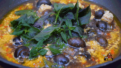 第七步:田螺焖熟之后,放入紫苏翻炒一下,等紫苏炒软之后,淋入水淀粉收汁,等汤汁浓稠就可以出锅装盘了,最后撒上葱花即可上桌。