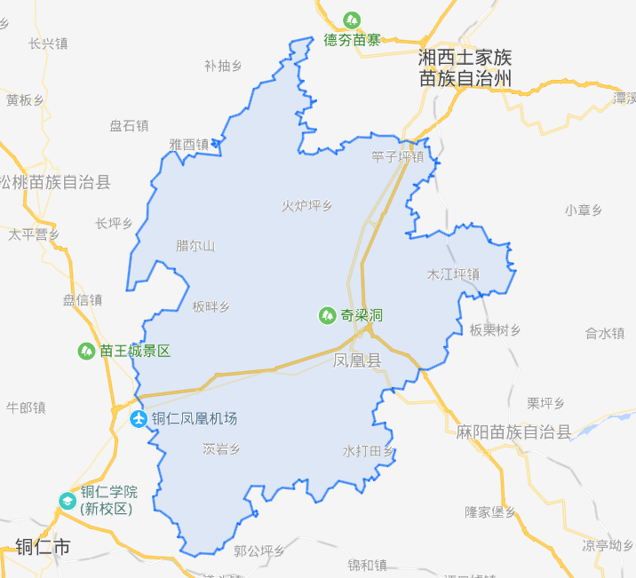 湖南省凤凰县地图图像(湖南省一个县,人口超40万,地处两省交界处!)
