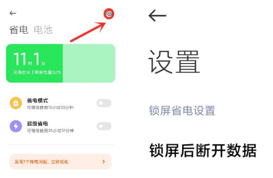 所以我们应该在手机上做好设置,首先在“设置”页面找到“省电与电池”,点进入之后点击右上角的设置,接着对锁屏省电进行设置,把“锁屏后断开数据”设置为“从不”就可以了。