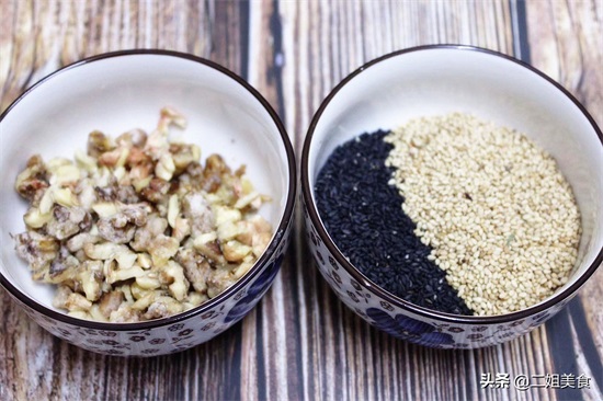主材:核桃仁及花生仁半碗、白芝麻及黑芝麻半碗。