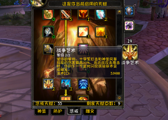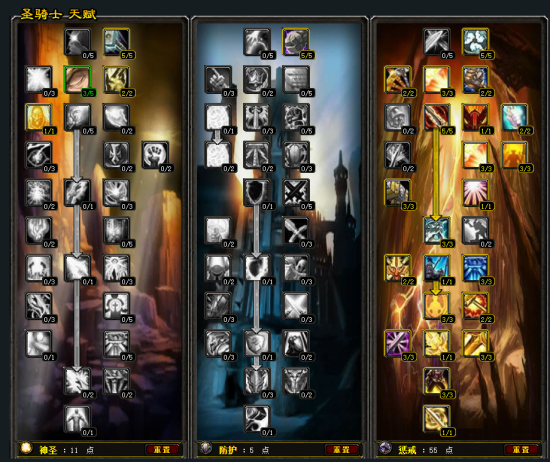 先说一下天赋,80级初期惩戒骑建议使用11-5-56的天赋点法,神圣系点出光环掌握,防护系点出力量5%,惩戒系56点天赋足够把所有伤害增益全部点满了。
