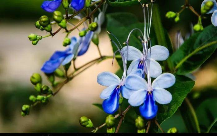 蓝蝴蝶~蓝蝴蝶的花语是希望和你在此相遇。就算遭受了厄运,也不要对爱情失望,不要否认过去的爱。蓝蝴蝶的高贵而优雅,又如月华那般迷离神秘,令人沉醉。