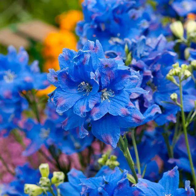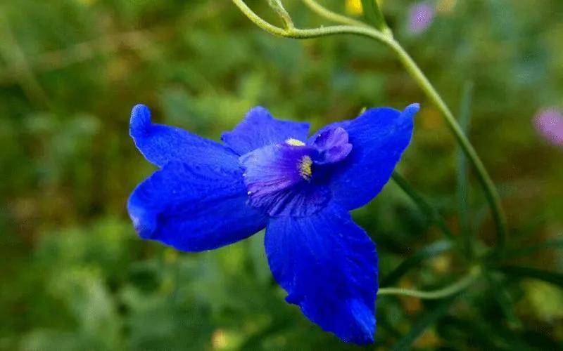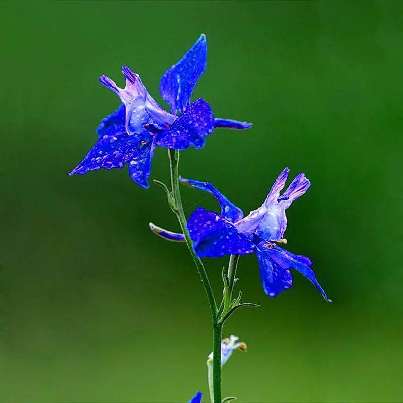 蓝翠雀花~蓝色的翠雀花有着犹豫的花语含义,代表了一种犹豫不决的情感。可以将其送给身边做事不果断、十分犹豫不决的人,希望其能够改变其犹豫的性格,从此做事坚决果断,可以不再踟蹰不前。