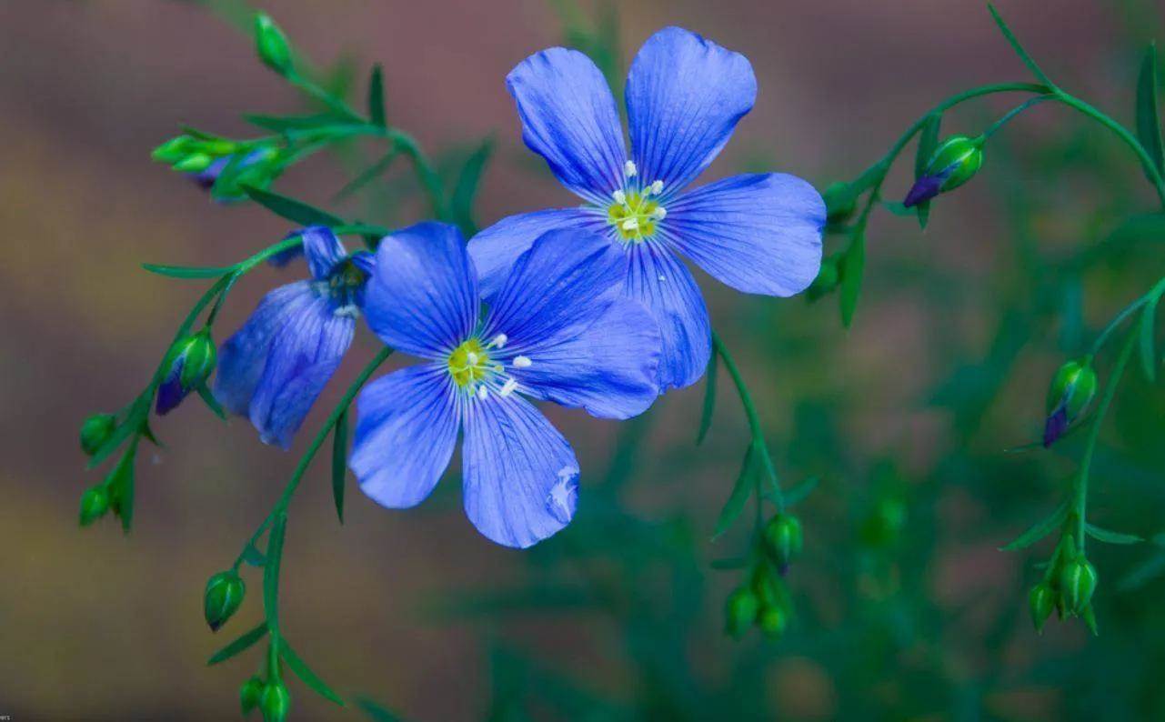 蓝花亚麻~蓝亚麻花花语为优美、朴实,花朵为浅蓝色和白色。小巧精致,花期较长,被人类赋予着较为神秘的传说故事。波西米亚的传说中,7岁小孩在上面跳舞会变美丽。条顿民族的传说中,可以辟邪,花开时还有女王来到人间,象征着人类向往美好的生活。