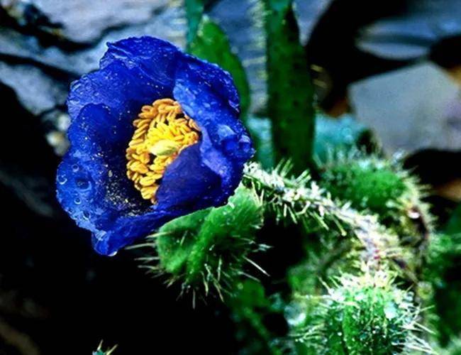 蓝色仙人掌~大漠荒沙展顽强,锋芒一生不轻狂;花开艳丽群芳妒,掌刺贪婪美名扬。仙人掌的花语:外刚内柔、坚强、将爱情进行到底、刚毅的爱情、温暖、和说不出的爱、隐忍、奇迹希望;仙人掌隐藏的花语:得不到的爱、孤独。