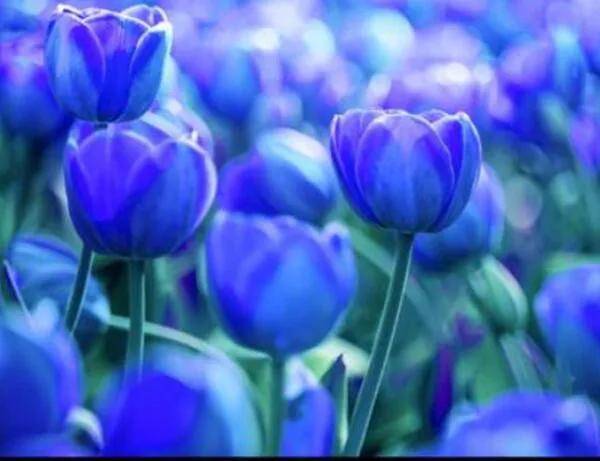 郁金香~蓝色郁金香有着神秘忧郁、珍贵宝物和荣誉桂冠的花语,蓝色郁金香是经过人工培育而成的品种,较为稀有少见,代表着稀世珍宝的意思,而且蓝色郁金香的花色是属于冷色系,给人一种忧郁高冷的感觉。