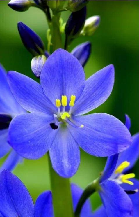蓝铃花~蓝铃花的一个花语是访问,因其形状呈钟形,所以又有两个非常好听的名字,“苏格兰的蓝色铃铛”和“妖精的铃铛”。同时它的形状也让人不禁想起房子玄关地方的小铃铛,当有客人拜访时,铃铛就会发出清脆的响声,所以蓝铃花的花语是“访问”。