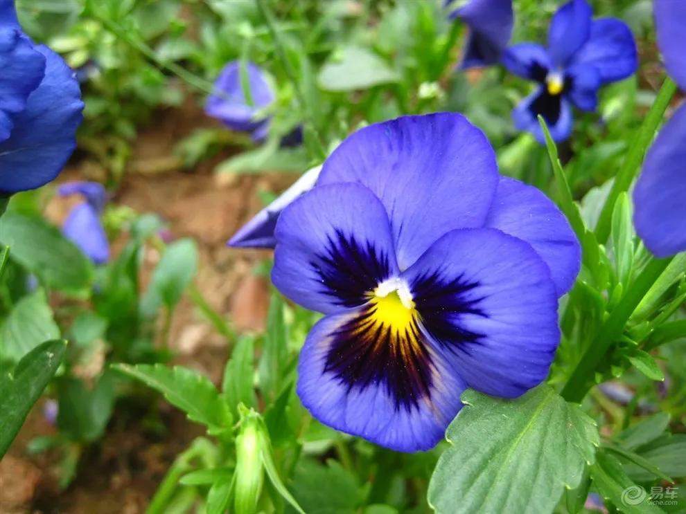 三色堇~三色堇代表快乐、沉思、思慕、快乐、请思念我。蓝色三色堇寓意着期待。蓝紫色寓意着无私的爱。