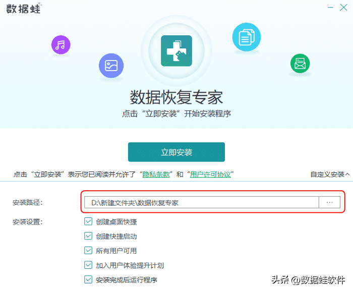 步骤1:下载数据蛙数据恢复专家软件,因为c盘保存的东西比较多,为了减轻c盘内存压力,保存的位置建议保存在其他磁盘。下载好后,将u盘与电脑连接上。