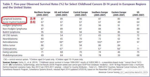 2015年发布的全球癌症报告显示的2005-2007年欧美国家儿童急性淋巴细胞性白血病5年生存率就已经接近90%,预后稍差的急性髓系白血病5年生存率也接近70%.
