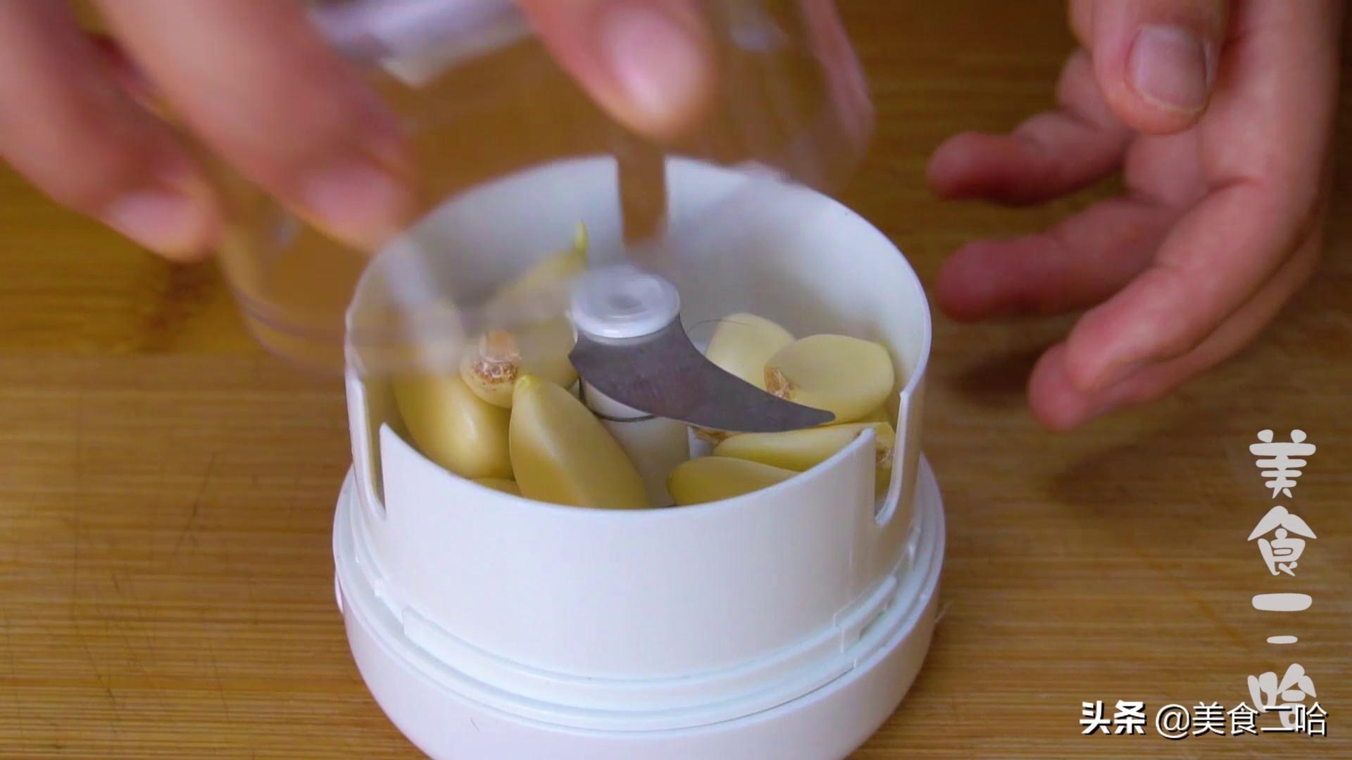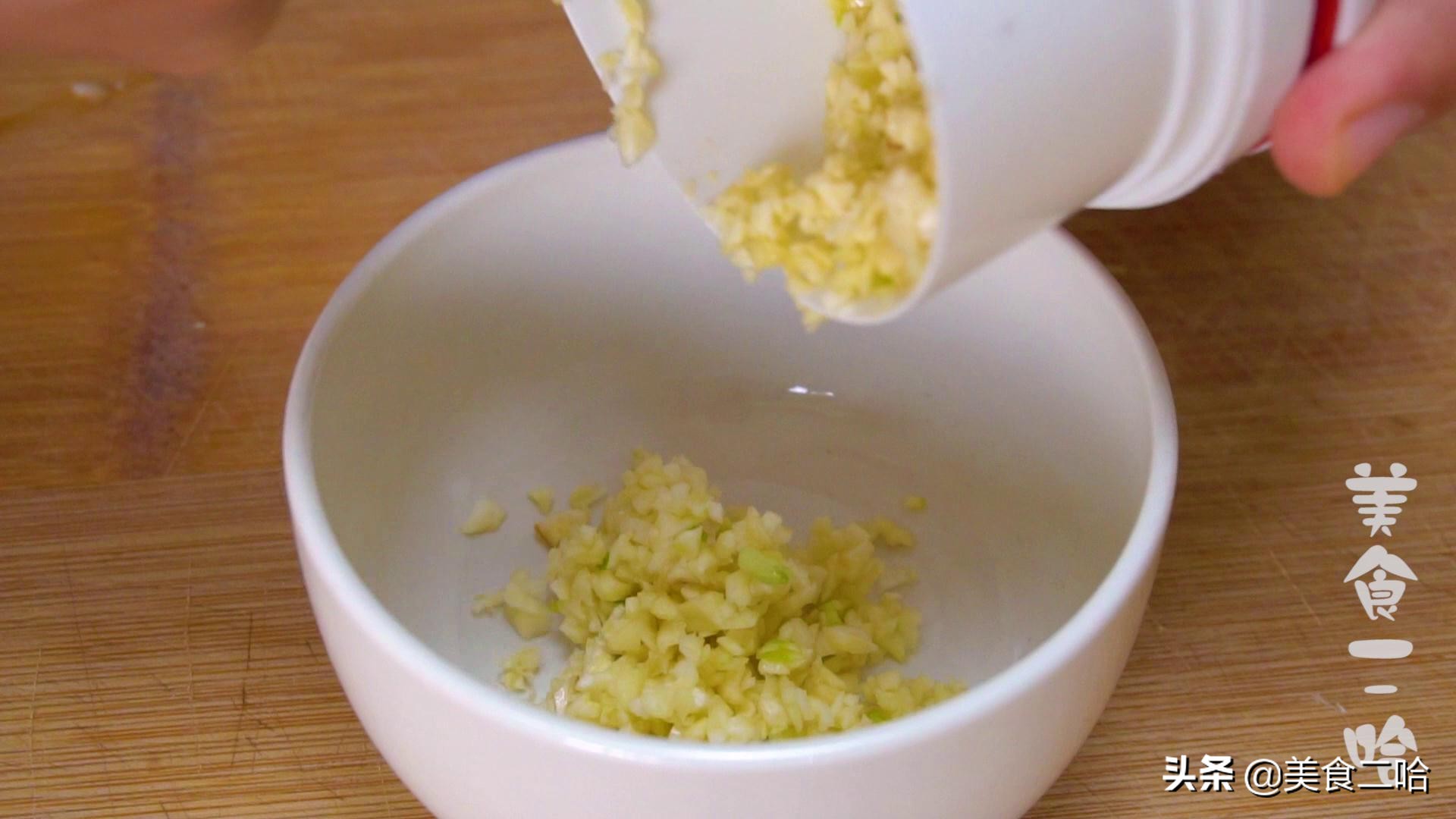 第七步:吃饺子离不开蒜汁,大蒜用厨房神器打成末,少加一些生抽多放一些陈醋,加一些香油提香,搅搅匀蒜汁就做好了,羊肉馅的大饺子又香又好吃啊。