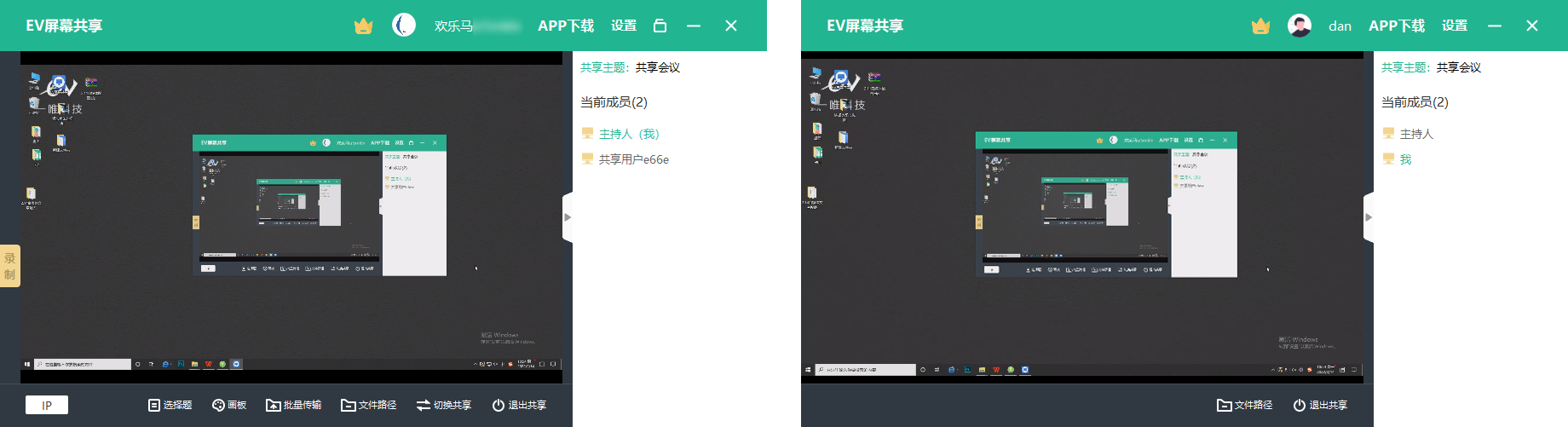 4.加入共享,使用另一个电脑打开EV屏幕共享。