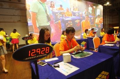 l 最少步骤还原法:这是最难的玩法。这种玩法在比赛过程中,组委会为选手提供题目和纸笔,选手可以自带3个魔方和若干贴纸,然后思考出最少的步骤来解决问题。选手在此期间可以转动魔方,但不可使用其他的计算工具,时间标准为60分钟。截止2016年11月8日,单次世界纪录是19步。