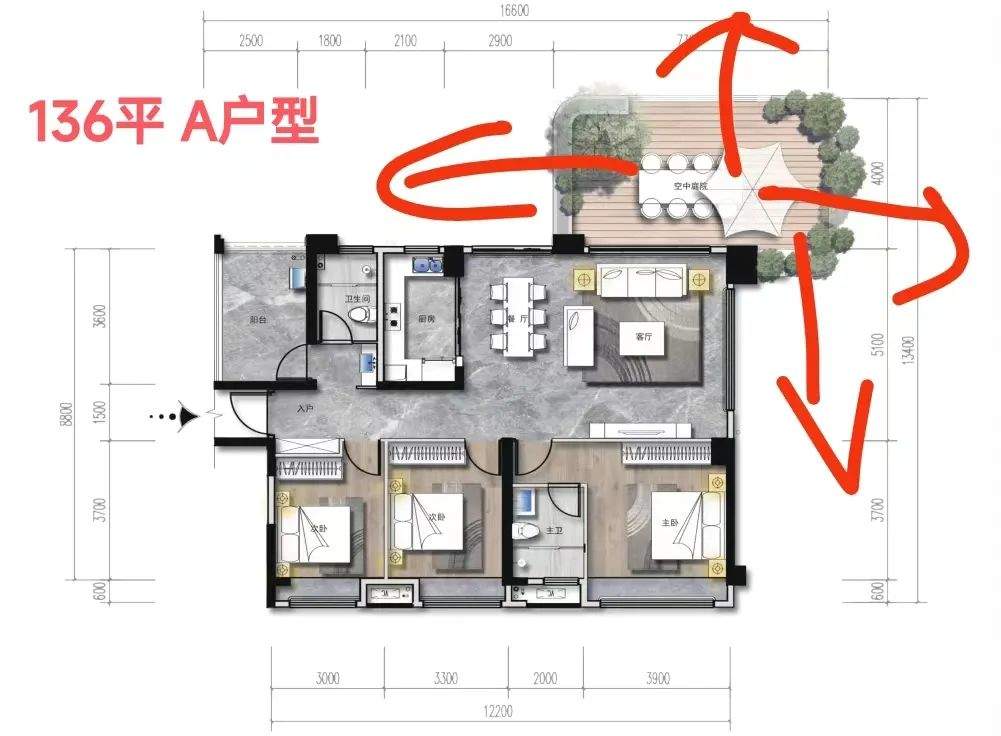 户型产品价格,136平在11000出头,楼层露台位置面积不同,价格也不同,中间楼层可能会在12000左右;